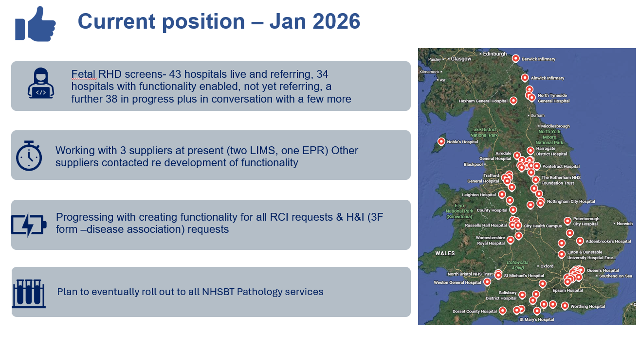 Roll out to RCI and H&I NHSBT laboratories- ongoing