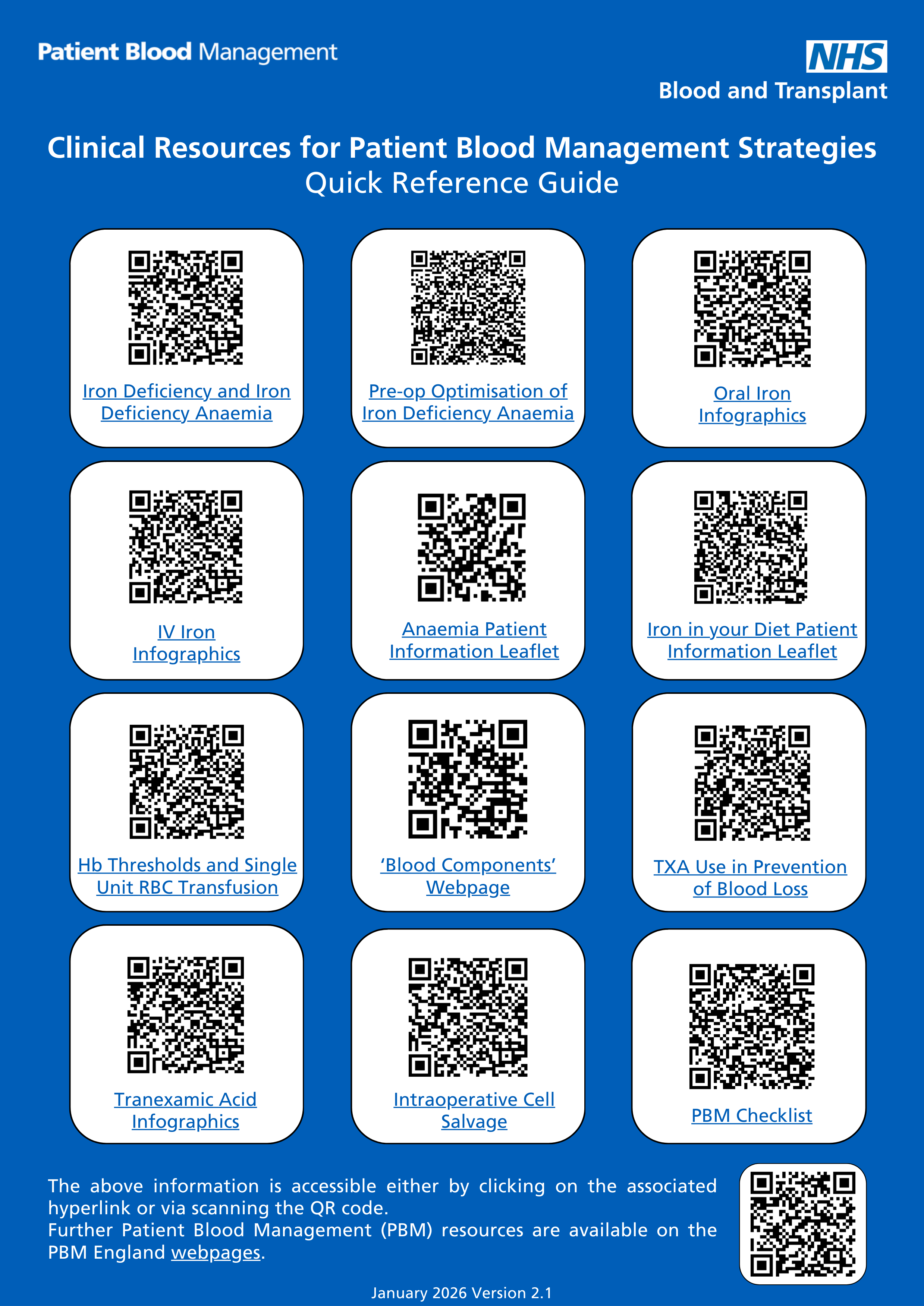 The Patient Blood Management quick reference guide to clinical resources supporting the implementation of PBM recommendations has been updated.